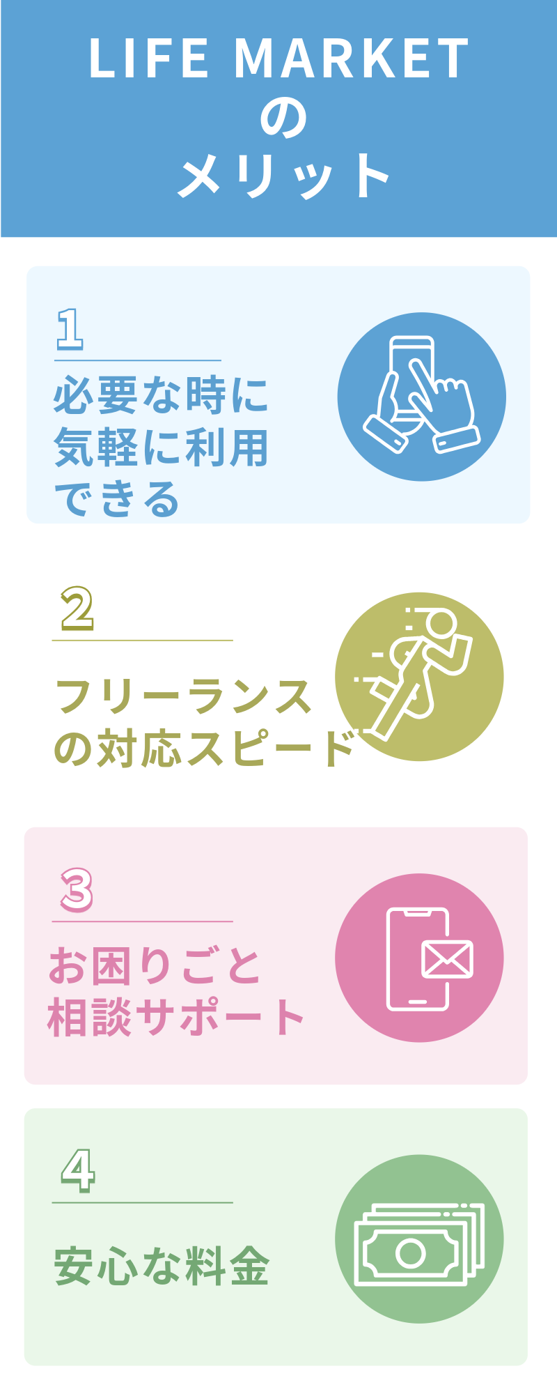 LIFE MARKET は他の企業ではできないスピーディーな対応、安心な料金でご利用頂けるよう全力でサポートさせて頂きます。