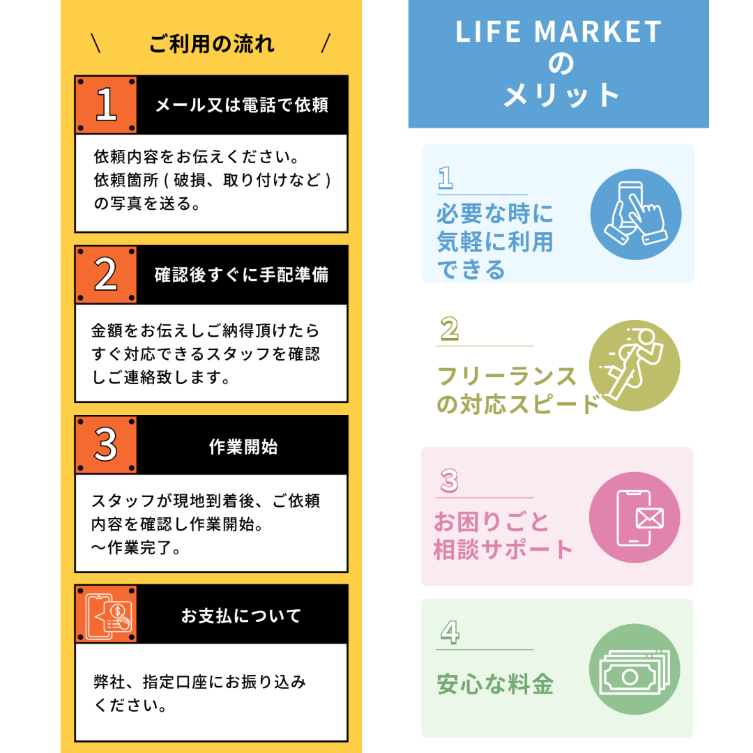 弊社は丁寧な仕事とスピーディーな対応を目標にしております。ご利用のお客様も事前にご依頼ヵ所やお困りごとを事前にお伝えいただけますと、より対応が早くなりお時間を短縮できる可能性があります。ご理解とご協力宜しくお願い致します。